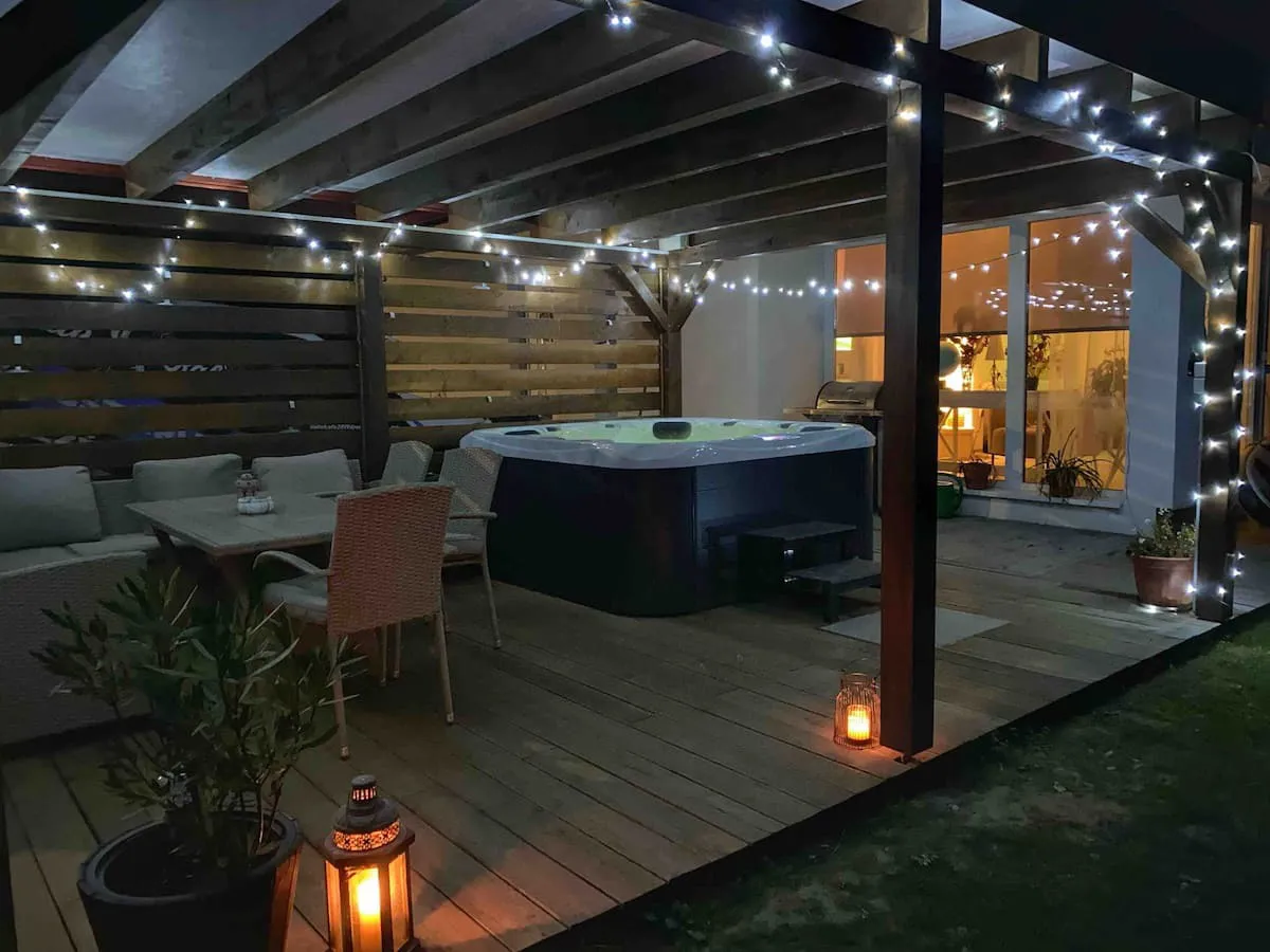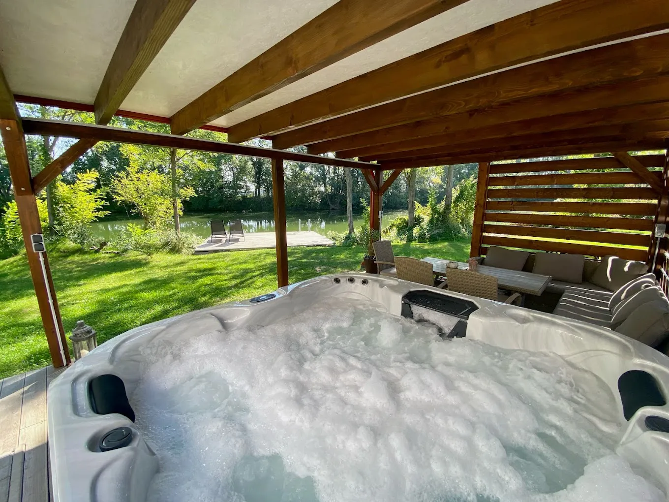 Esti lazítás a buborékok között, romantikus hangulat a csillagos ég alatt, vagy közös fürdőzés a családdal – a fűtött jakuzzi minden pillanatot különlegessé tesz. A fürdőzés élménye a természet közepén a melegvíznek köszönhetően télen is garantált.